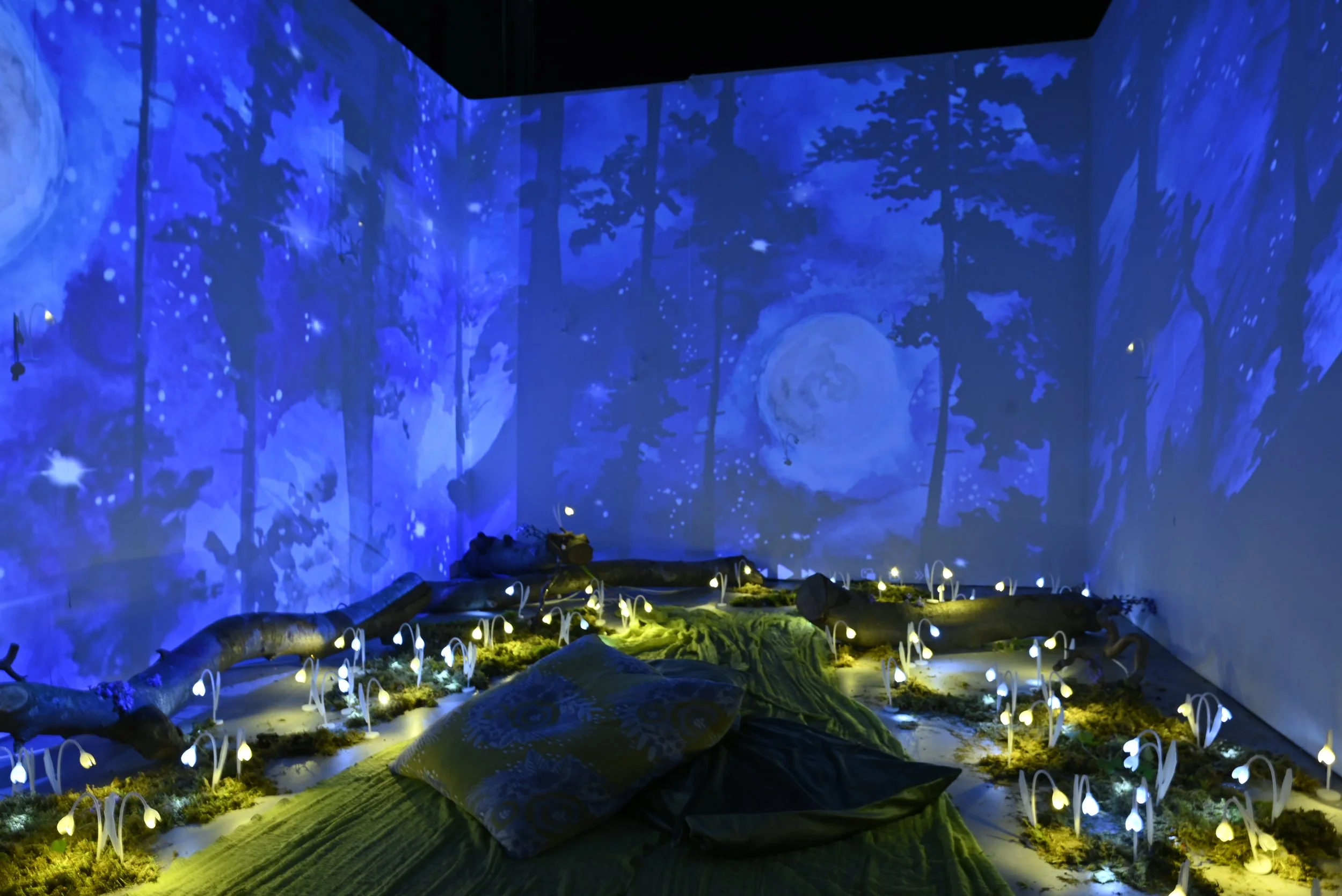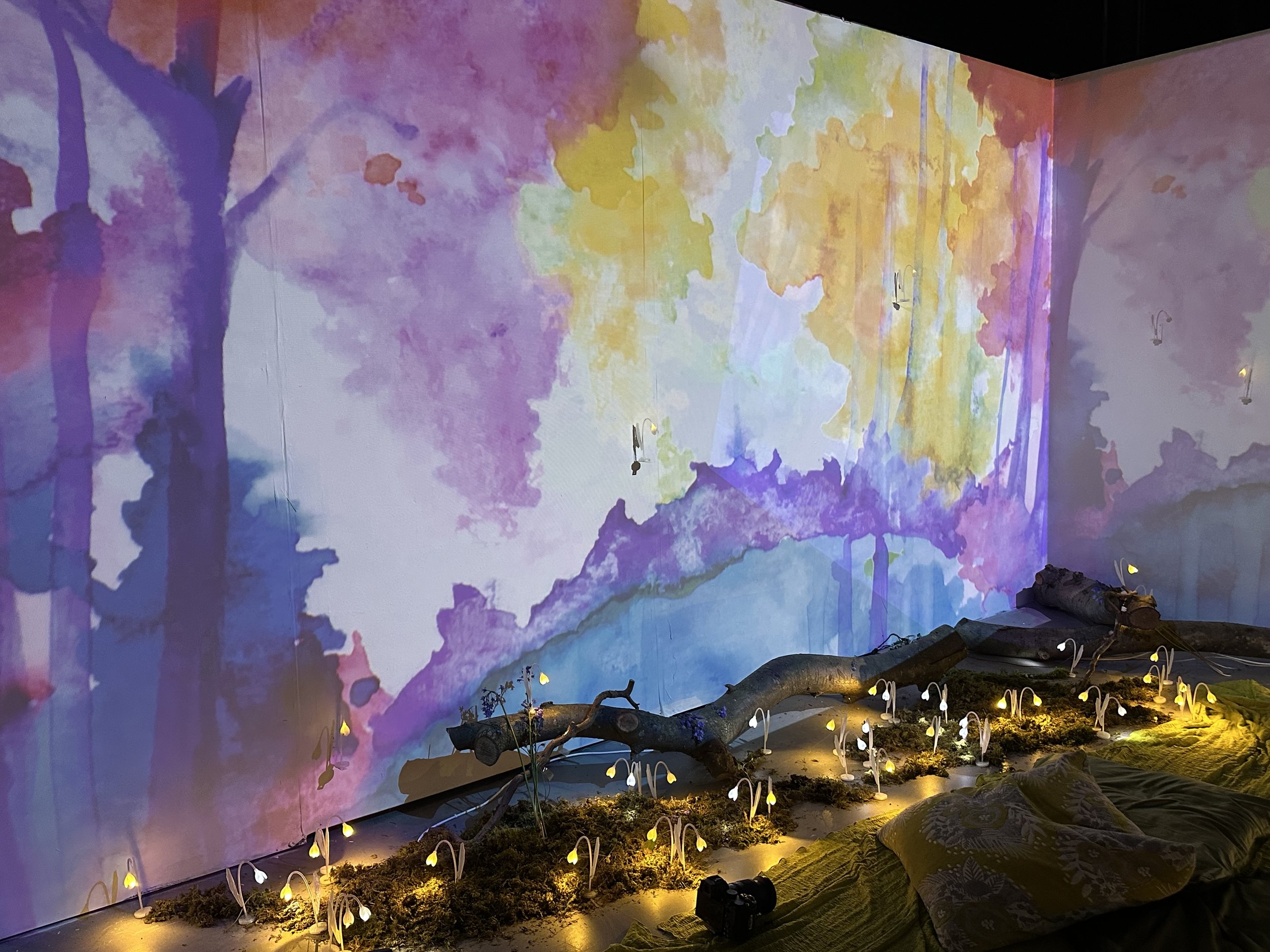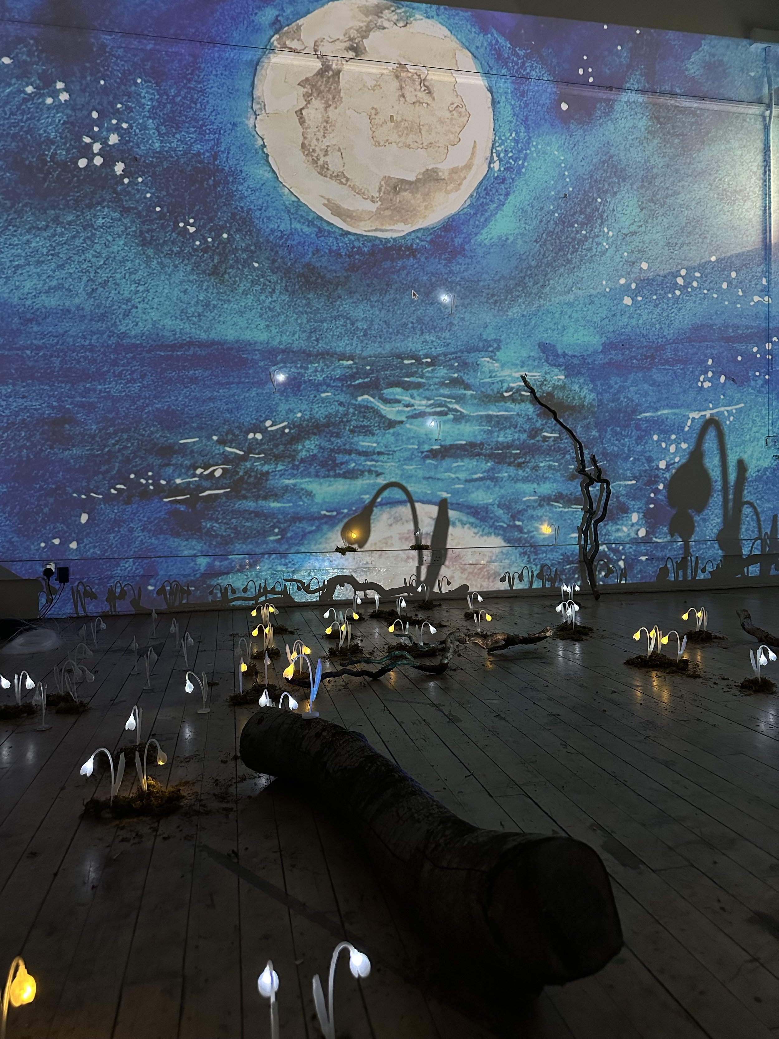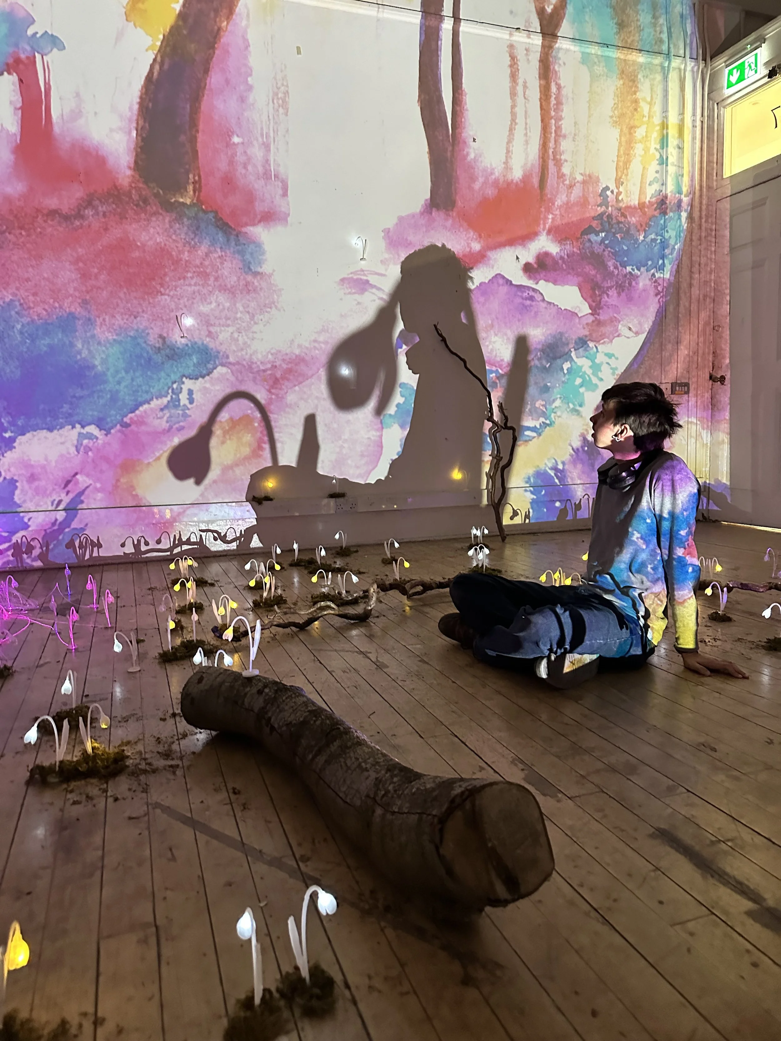 Ione Jenkins is a somatic intallation artist, sculptor and painter. She makes works which aim to explore the relationship between nature, the human nervous system, and our emotional experience. Using light-based immersive installation, her projections, sculptures and images reflect the difficult aspects of life with mental illness, whilst providing a sense of safety and respite from the outside world, creating portals to escapist dreamscapes. By inviting viewers to find a sense of romance and wonder in the everyday, she encorages connection to eachother, the natural world, and viewer’s inner worlds.